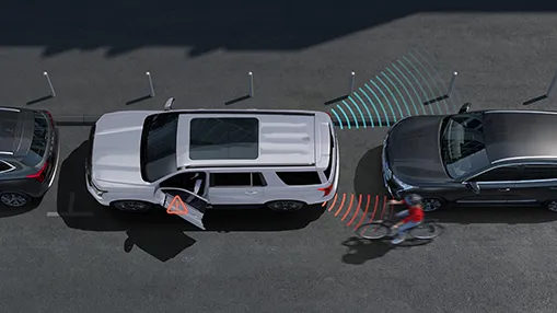 Отслеживает присутствие попутных автомобилей вне зоны видимости боковых зеркал, обеспечивая безопасность при смене полосы движения и открытии двери во время стоянки.